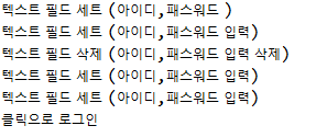 System.out.println("텍스트 필드 세트 (아이디,패스워드 입력)");
