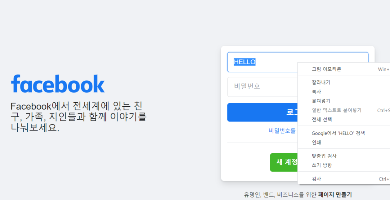 입력 창의 HELLO를 더블클릭하고, 입력창을 오른쪽 클릭하도록 한다